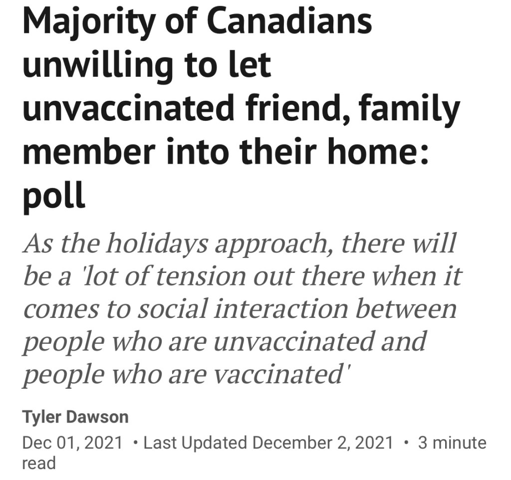 Our society is right now divided between a smaller group that is resisting taking the vaccine for all sorts of different explanations and reasons and a majority that is increasingly punishing these people for making health choices they do not agree with.